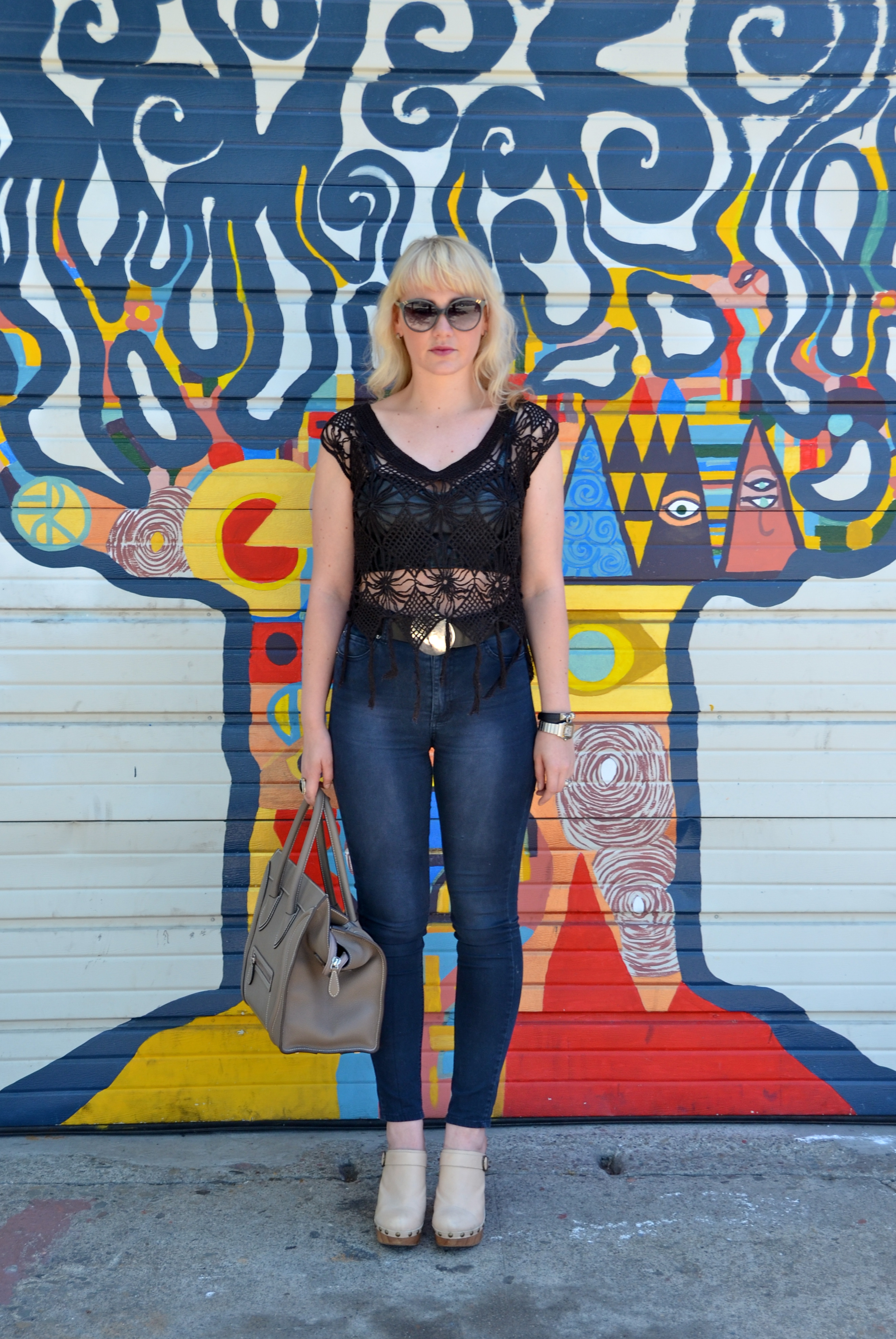 I woke up vibing to Led Zeppelin BBC sessions early this morning, so naturally as I was getting dressed this morning I was in a 70’s mood. My favorite movie, Almost Famous, came to mind, and today I am channeling my favorite character Penny Lane. I am still obsessed with crop tops and high waisteds–I threw in some crochet over a leather bralette to salute the decade and add some edge. I topped it off with some sky high Jeffrey Campbell clogs to give it some height.