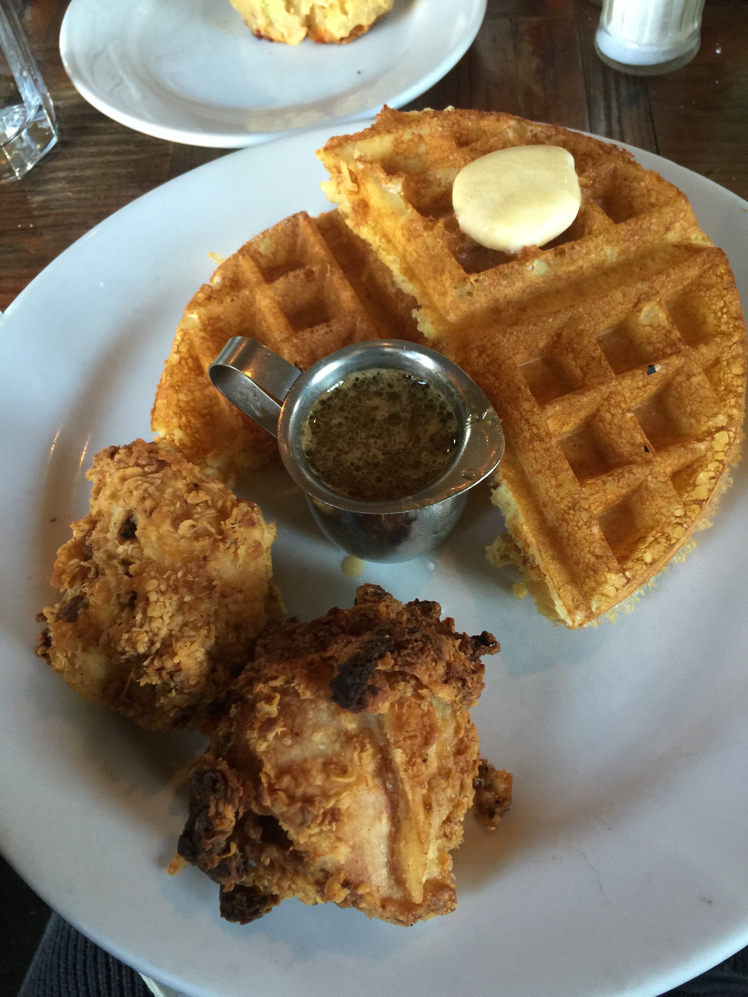Okay, so Roger and I are Chicken and Waffle connoisseurs. We even had Chicken and Waffles as a buffet choice at our wedding by Karen Bevels Custom Catering (she and her team were AMAZING). I was first introduced by Grandma and Grandpa Hunter in LA at Pann’s (my fave in LA and the diner scene in Pulp Fiction was filmed there, so that adds a coolness factor). Roscoe’s is good too, but Pann’s has a special place in my heart.