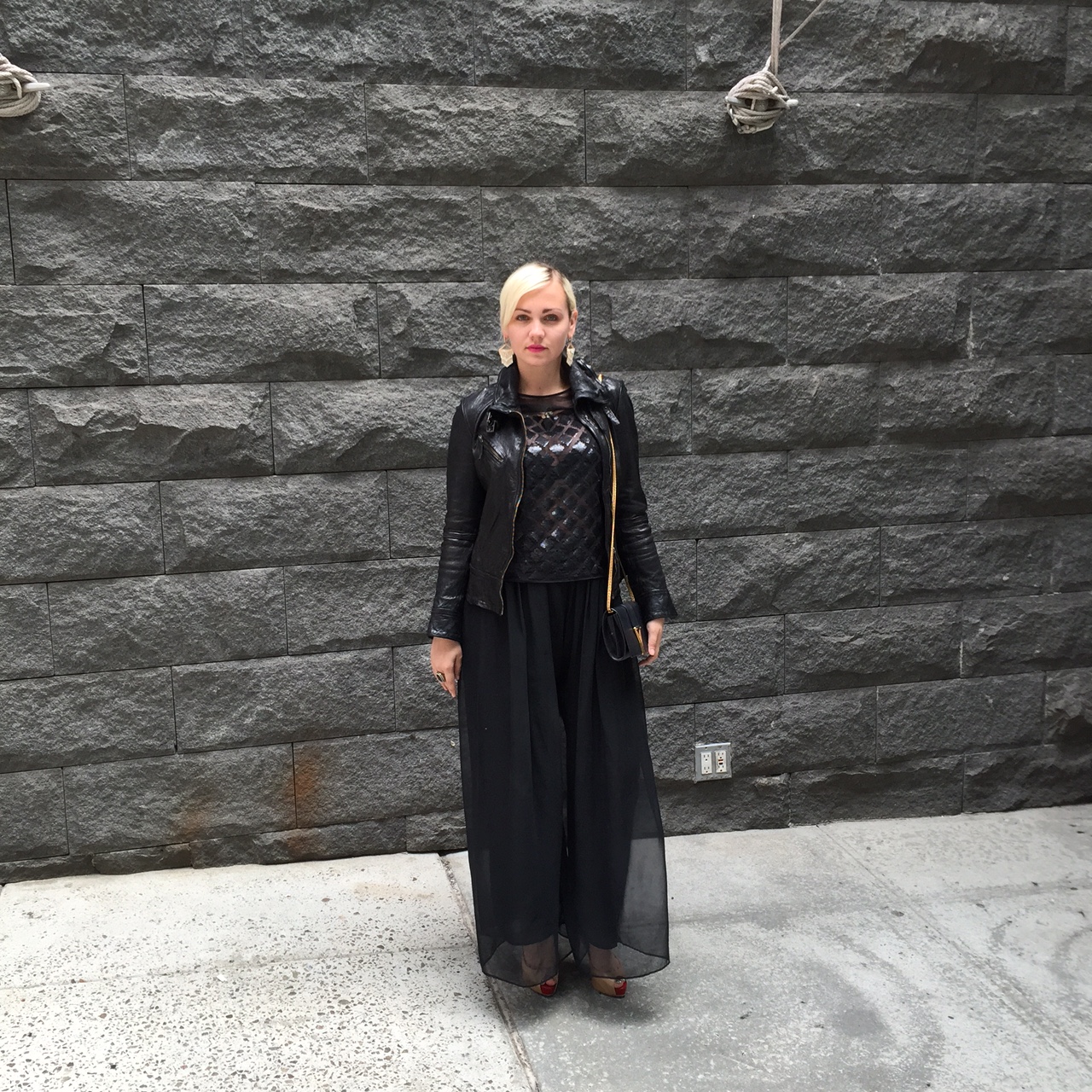 Our weekend in NYC went so fast… We red eyed it on Thursday night into JFK, checked into Le Parker Meridien, and took a nap to fight the Jet Lag. Before we knew it, it was time to get ready for our Aunt Lizzie and Uncle Jordan’s rehearsal in Harlem at First Cavalry Baptist Church and rehearsal dinner at La Cremaillere in Bedford, CT. To the rehearsal, I wore a sequin top from Allsaints (similar), an Allsaints leather jacket (similar), vintage Pierre Cardin palazzo pants (similar) and my nude Louboutin peep toes. That was day 1.