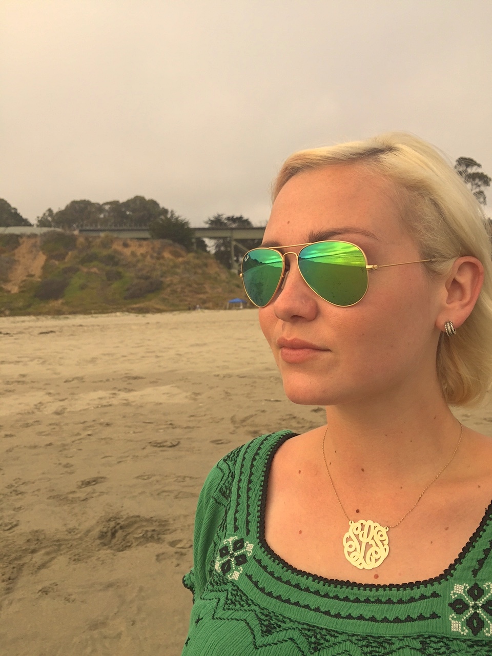 We spent the weekend in La Selva Beach, CA with my parents at their beach house, and this little town is the perfect place to relax and decompress. When we come down here, we sleep in, go for beach walks, read books, take afternoon naps, cook delicious dinners together and get away from it all. Roger and I went for a beach walk with our rescue dog Murphy and I wore one of my favorite laid back beach looks. I am obsessed with Mexican Huichol blouses this summer and this green one (similar) is a fun, bohemian option. I paired it with my gorgeous (and comfortable) lace shorts from Anthropologie, and my Birkenstocks. I hope you all have a lovely week, and don’t forget to take some time for yourself!