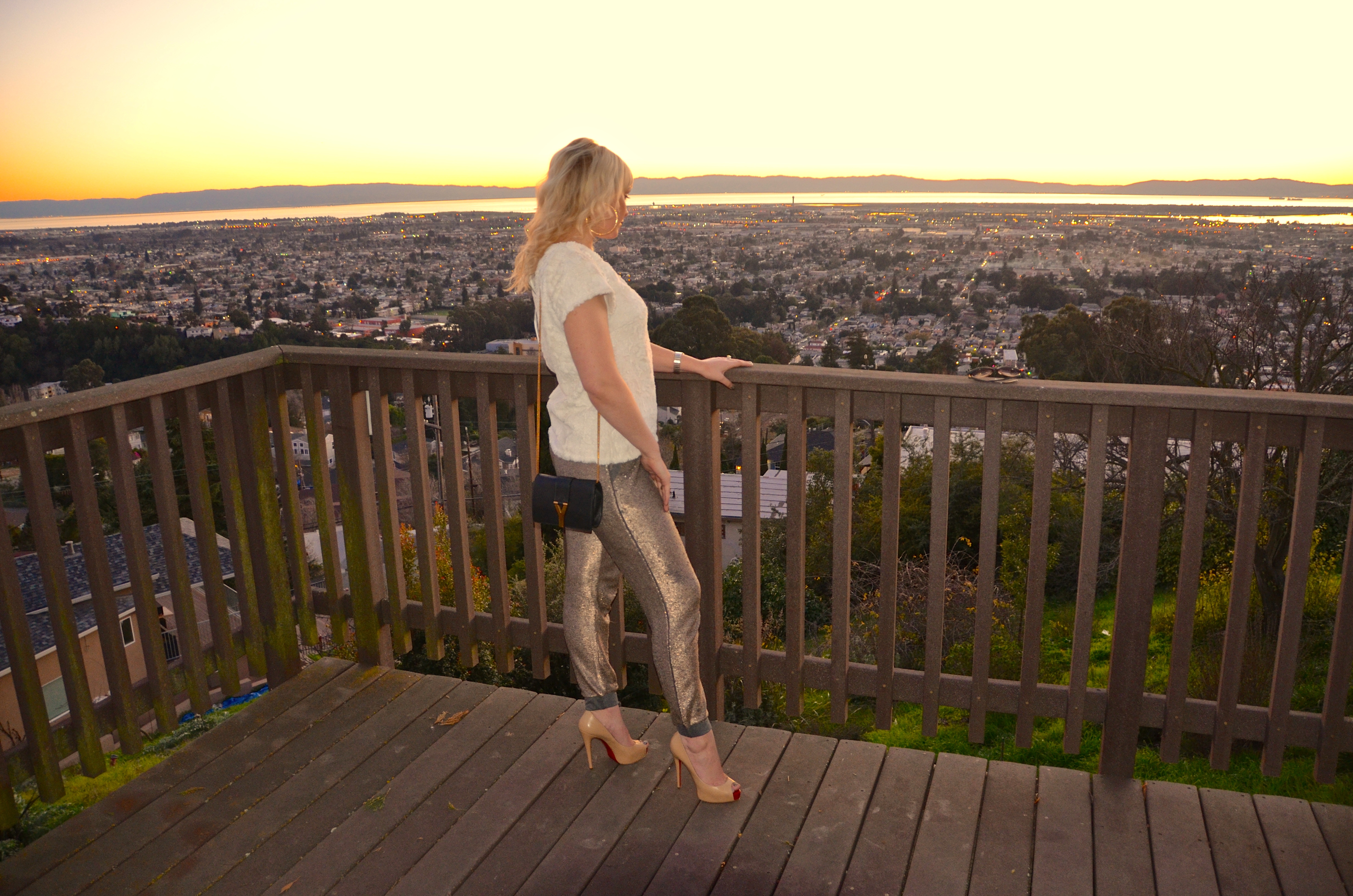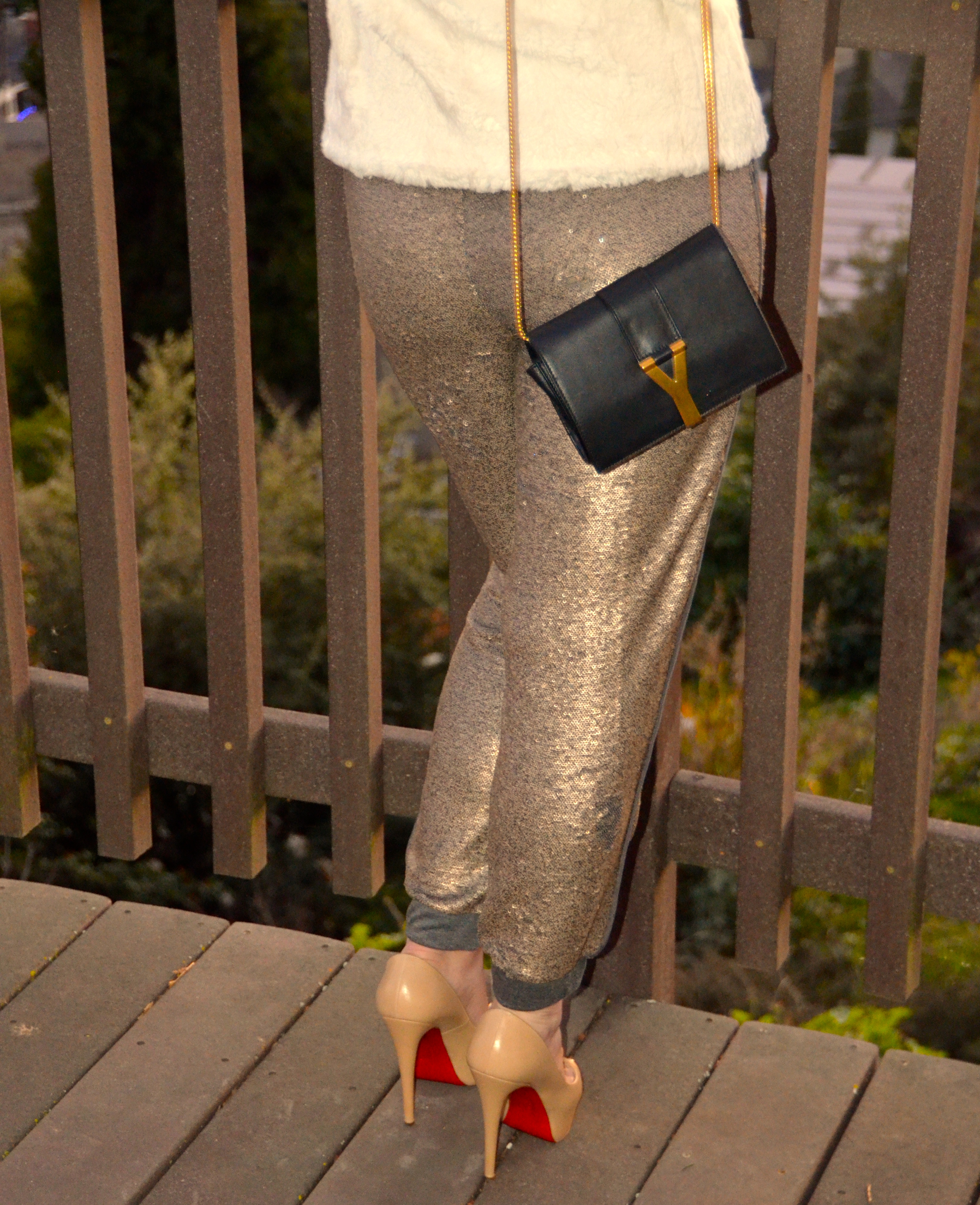 Of course I did an impromptu photo shoot (photo cred to my Mom) to show at least one outfit I wore on the trip. The first day was not super cold yet, so I wore my J Crew denim button down, Anthropologie sequin joggers (on sale now!), Charlotte Russe Booties, an Allsaints beanie (similar), Giorgio Armani lipstick and a Celine bag. It was laid back, but still luxe at the same time.